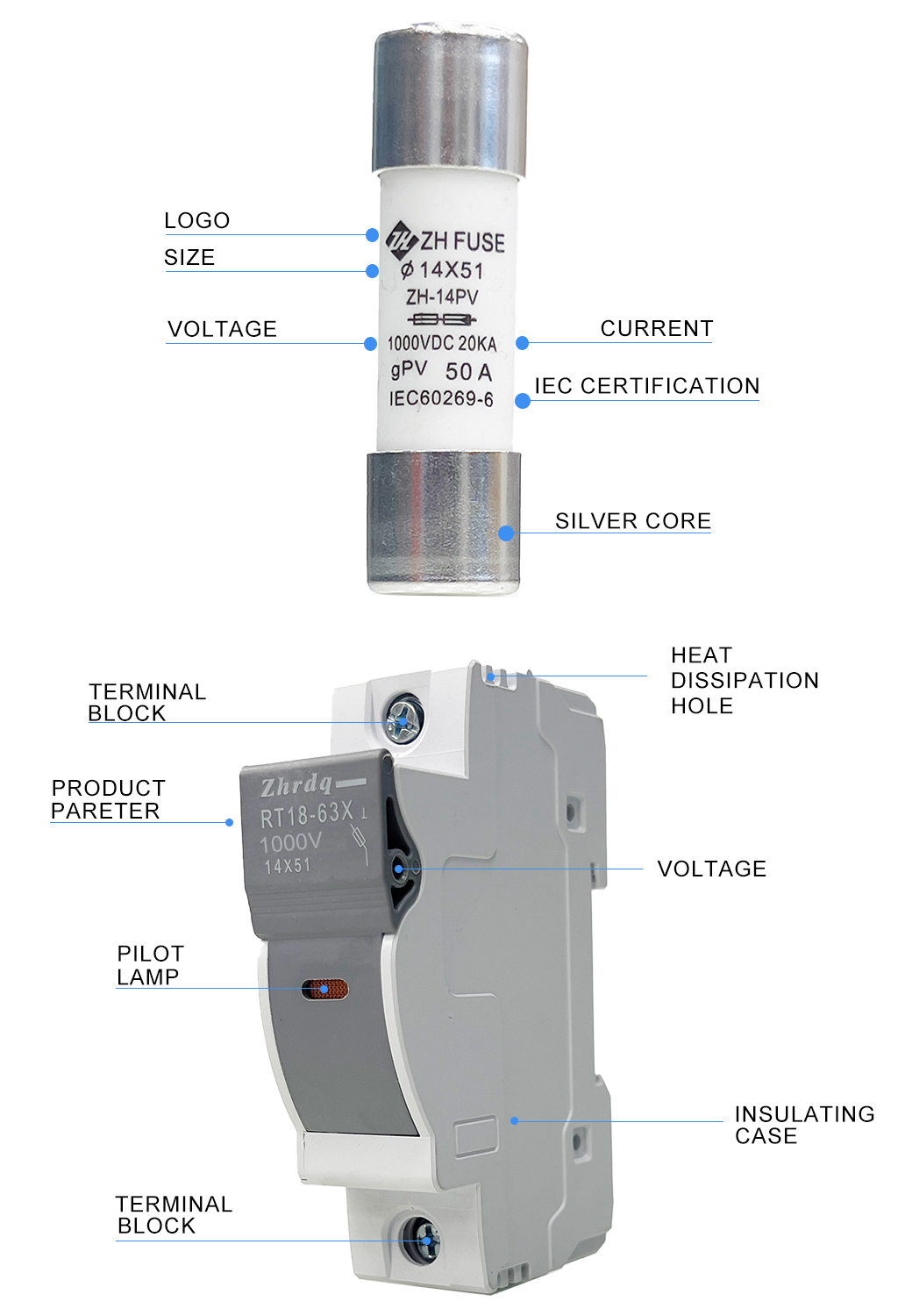 ZHENGRONG е китайска компания, която е специализирана в производството и производството на цилиндричен gG предпазител ZHPV-63 14X51, който е специално проектиран за бързодействаща защита срещу токове на късо съединение и токове на претоварване, често срещани в индустриални приложения. Цилиндричният предпазител ZHPV-63 14x51mm gG използва 14x51mm предпазител размер, което го прави идеален за защита на общи промишлени вериги, работещи до 1000 V, като двигатели, трансформатори, разпределение на ниско напрежение и управляващи вериги. Държачът за предпазител, който е съвместим с цилиндричния предпазител ZHPV-63 14x51mm gG, е държачът за предпазител ZHPV-63 14x51mm, който се отличава с огнеупорна обвивка, която отговаря на стандарта V0 и мъртва предна конструкция за защита от пръсти. Освен това, цилиндричният предпазител ZHPV-63 14X51 gG е свързан към шина и се предлага в конфигурации 1P/2P/3P/4P, за да отговаря на различни изисквания за инсталиране.